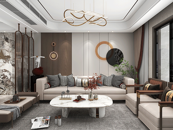 宿州恒泰悦熙台新中式风格装修设计案例107平实景效果图